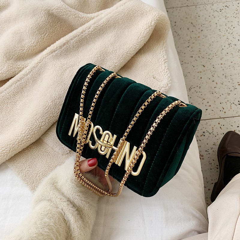 Product Name: Moschino green velvet bag sale