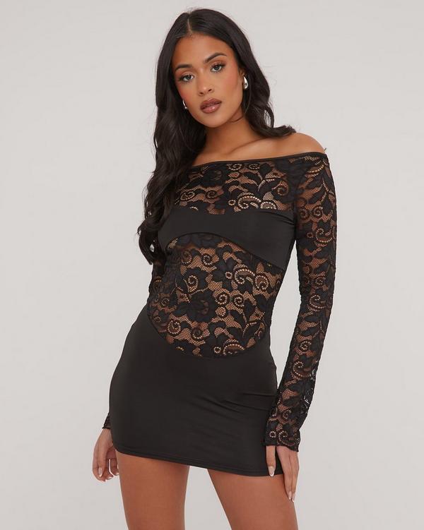 Product Name: Navy lace panel tiered bodycon dress sale