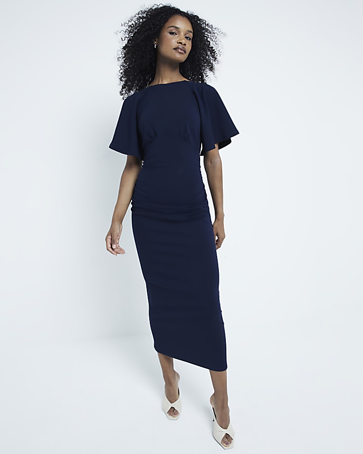 Product Name: Navy midi dress with sleeves sale