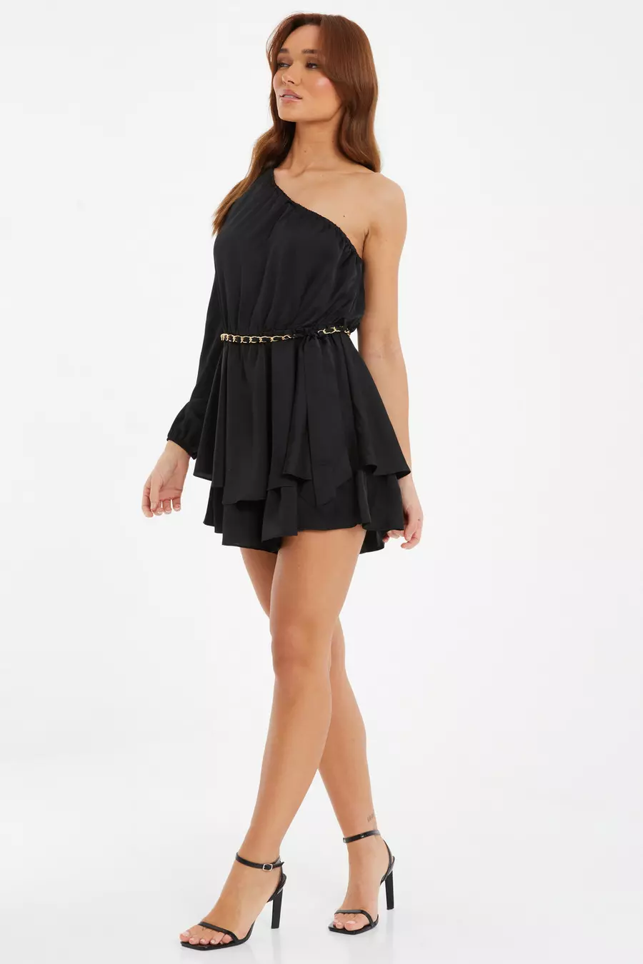 Product Name: One shoulder black playsuit sale