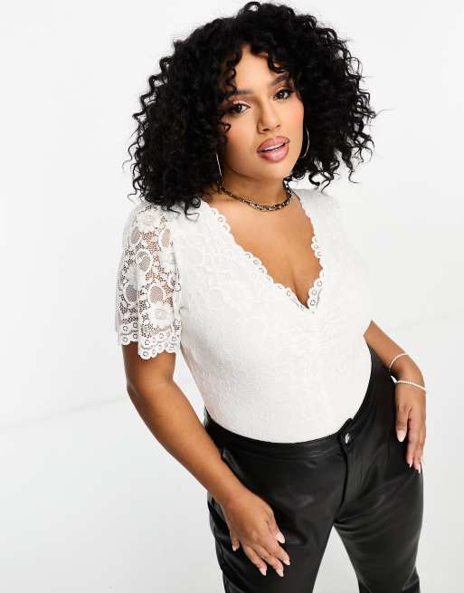 Product Name: Plus size white lace bodysuit sale