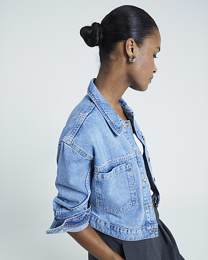 Product Name: River island cropped denim jacket sale
