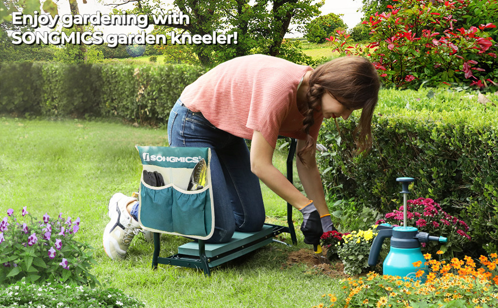 • SONGMICS Outdoor Portable Kneeler Seat Sitting Stool with Tool Bag Multifunction foldable garden kneeler and seat BestSuppliers