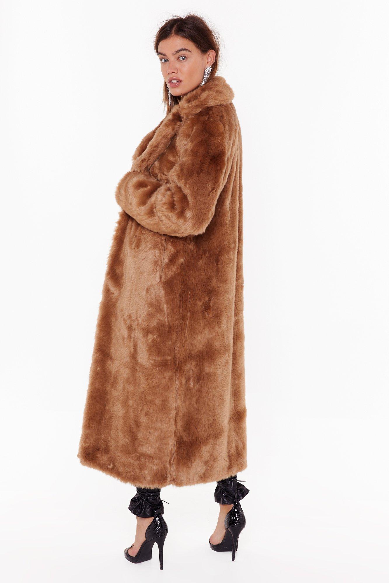 Manteau long en fausse fourrure Caresse moi dans le sens du poil Nasty Gal