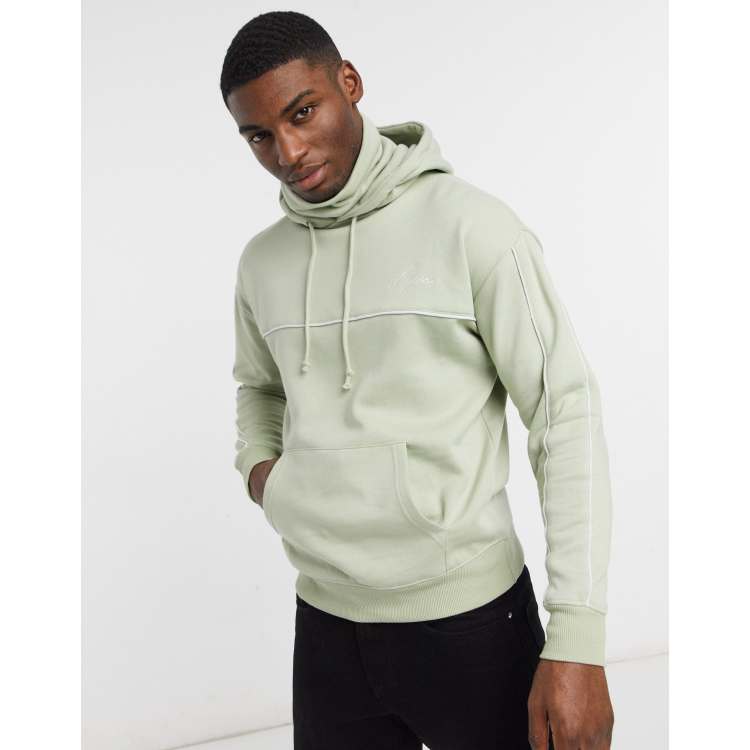 Snood neck hoodie sale, New Look embroidered NLM hoodie with snood in green ASOS sale